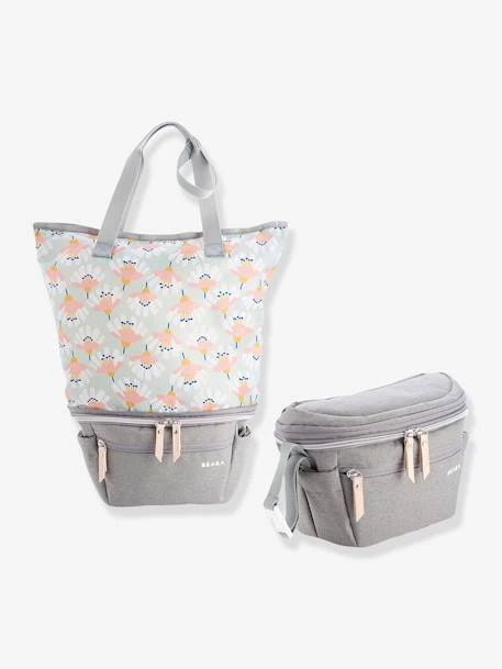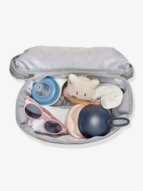 - Compartiment principal (3 L) pouvant contenir un biberon, une boîte doseuse, des collations, des lingettes, un jouet, des couches de rechange